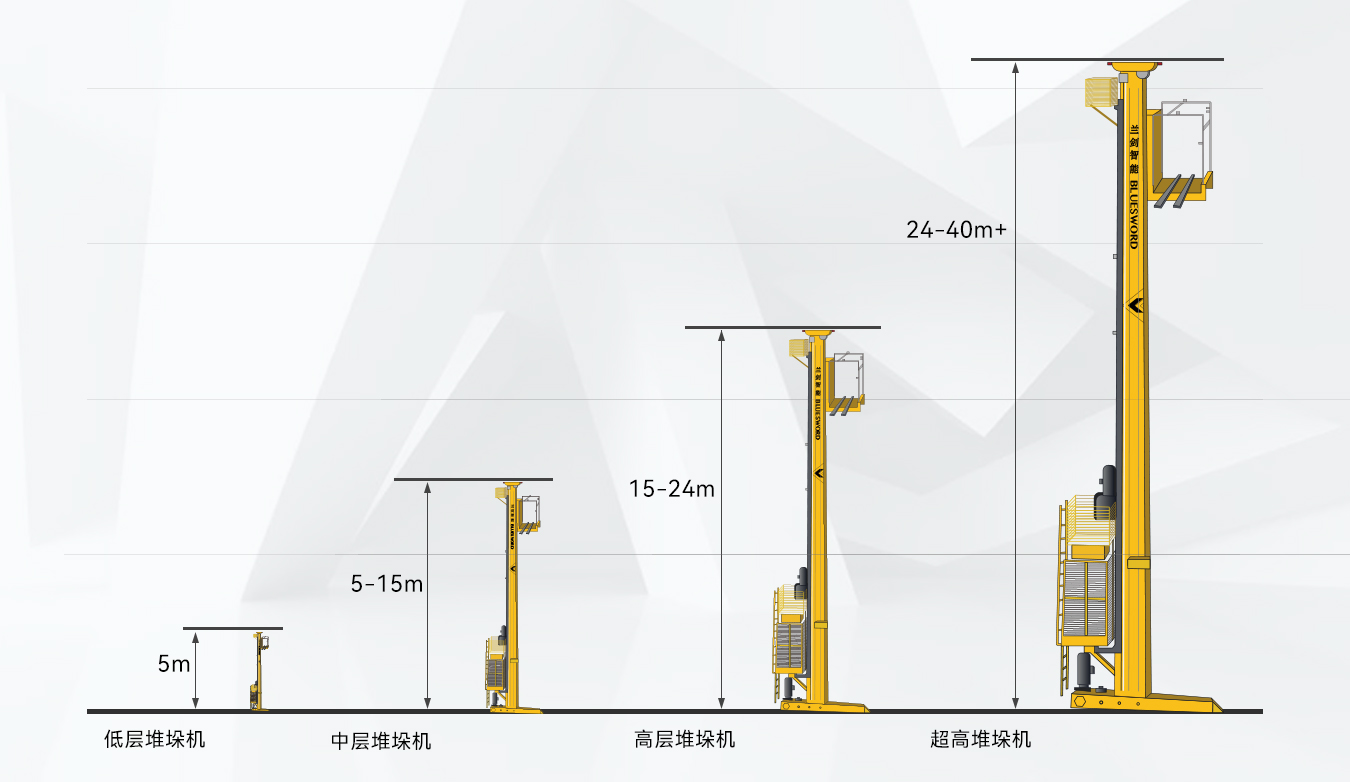 将堆垛机按照高度不同进行分类,,,,,,起升高度在15m以上为高层堆垛机。。。。。。。。之后对15m以上区域再次进行划分,,,,,,起升高度超过24m称之为超高堆垛机。。。。。。。。NG娱乐智能最新研发的超高堆垛机提升高度可超过40m,,,,,,达到了国际前沿技术水平。。。。。。。。